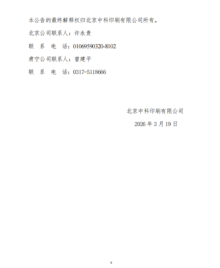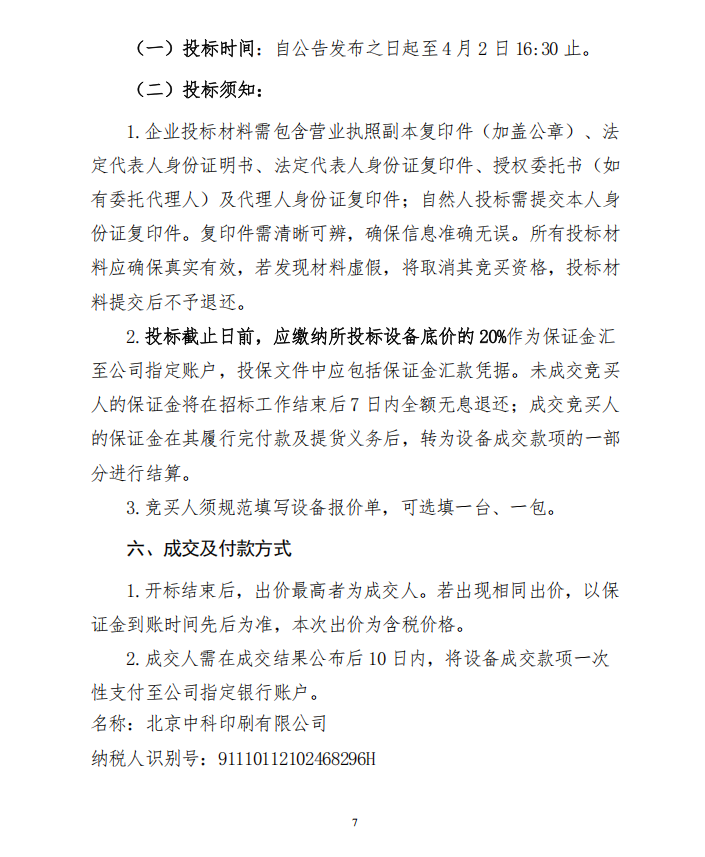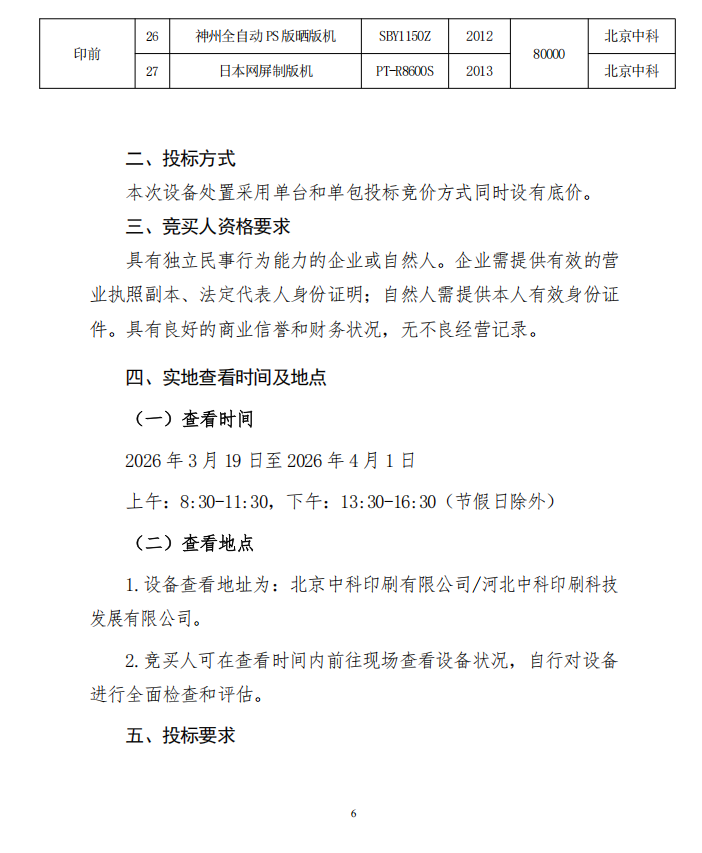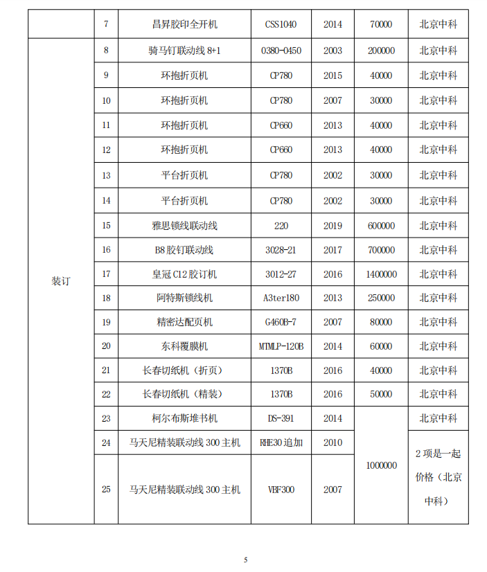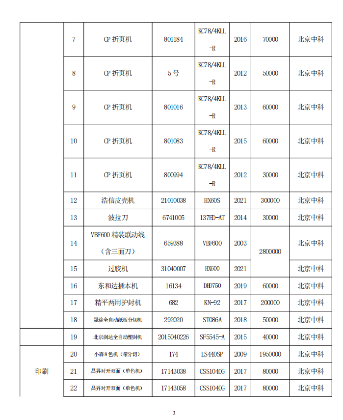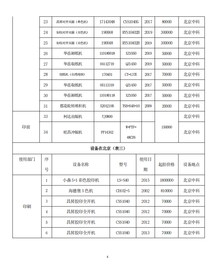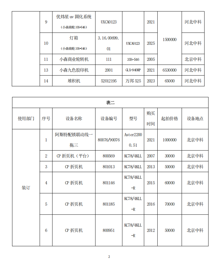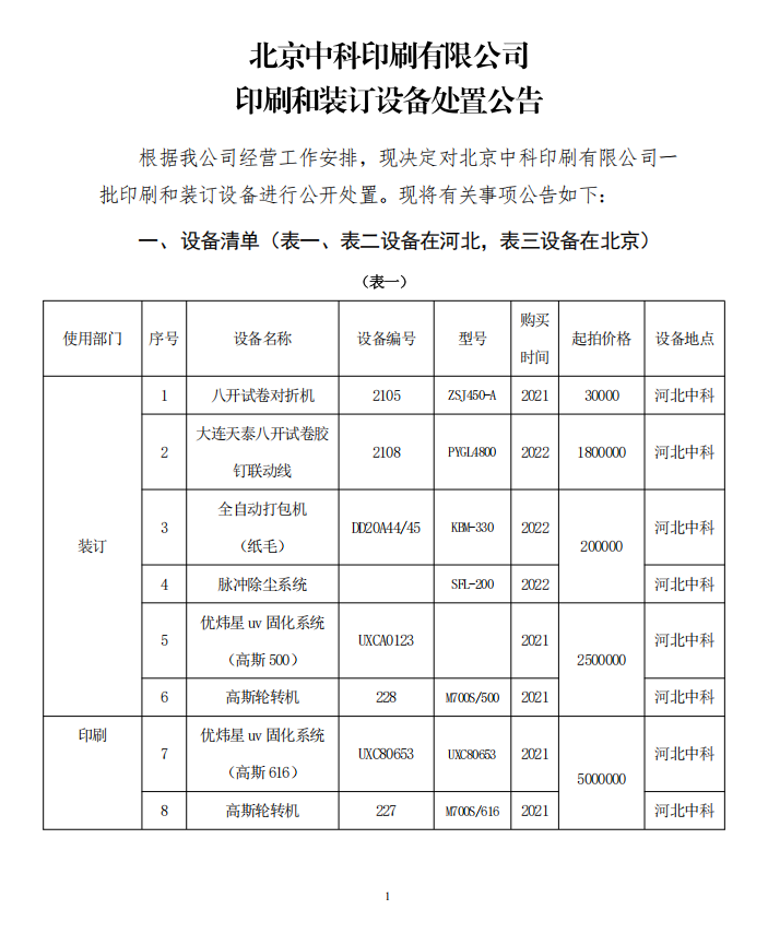 北京中科印刷有限公司 印刷和裝訂設備處置公告