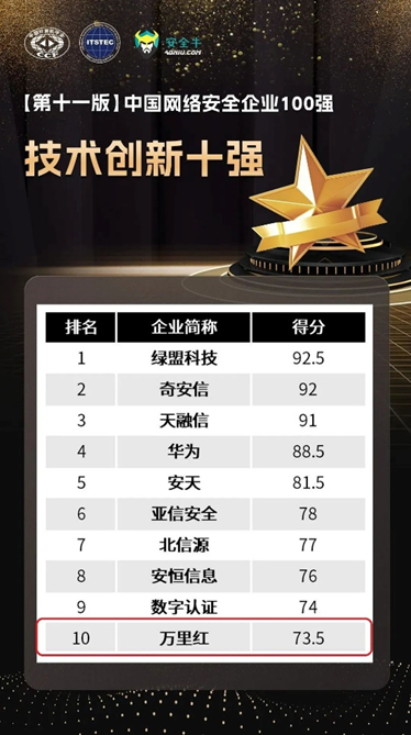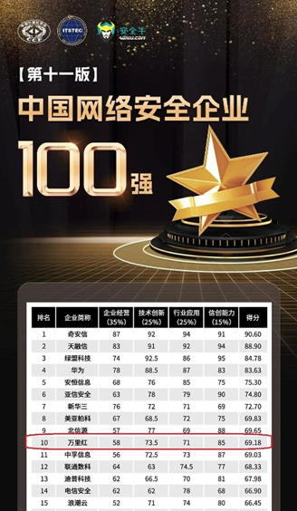 東方科儀控股成員企業(yè)萬里紅榮登中國網(wǎng)絡(luò)安全100強榜單