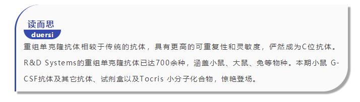 The use of recombinant monoclonal antibodies can reduce the variables in the experiment and improve the repeatability of the experiment. R&D Systems' recombinant monoclonal antibodies include rabbit, rat, mouse and other species, undergoing rigorous sequencing validation and batch-to-batch testing to ensure extremely high batch-to-batch consistency.