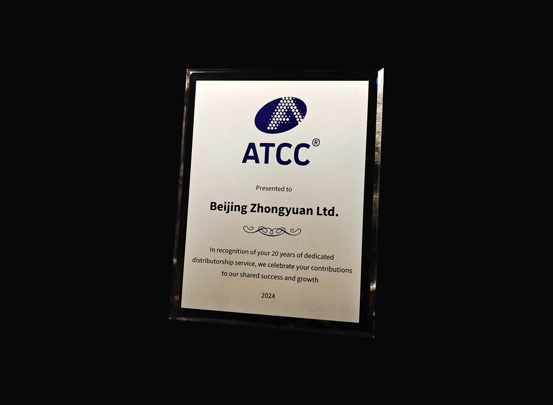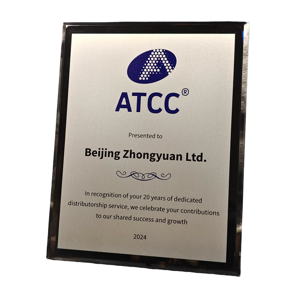 中源公司獲ATCC合作二十載紀念獎牌