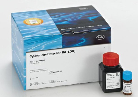 Cytotoxicity Detection Kit(LDH)是基于檢測受損細胞釋放的LDH活性,從而對細胞毒性進行快速簡單的定量。當細胞膜發生損傷時,細胞會釋放LDH到細胞上清中。LDH是個穩定的細胞質蛋白,正常情況下在所有細胞中保持幾乎相同的濃度。