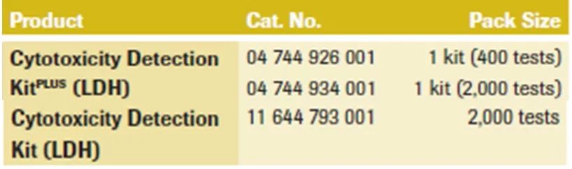 Cytotoxicity Detection KitPLUS (LDH)包含了Cytotoxicity Detection Kit (LDH) 的優點,同時額外增加試劑stop solution,操作更加簡便。