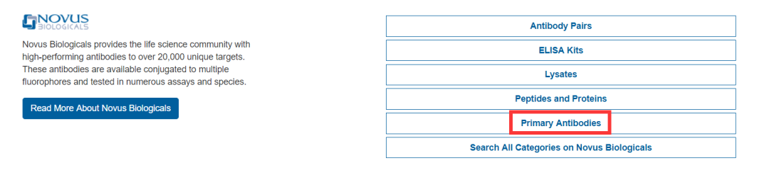 這里以 Novus Biologicals? 品牌產品為例,點擊「Primary Antibodies」