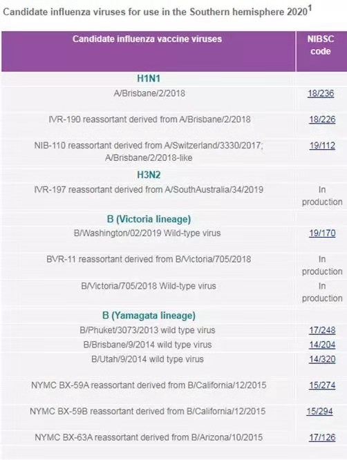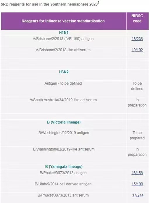 近日NIBSC剛剛更新了南半球2020年候選流感病毒和相關(guān)抗原抗血清標(biāo)準(zhǔn)品: