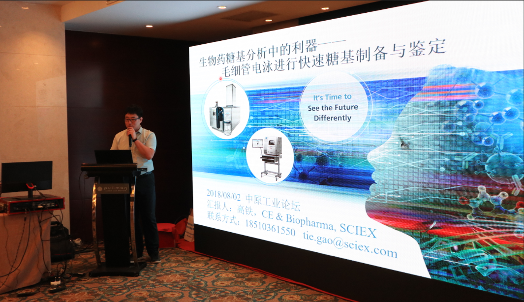 Sciex公司生物制藥部門技術專家高鐵對“生物藥糖基分析中的利器——毛細管電泳進行快速糖基制備與鑒定”進行了主題演講