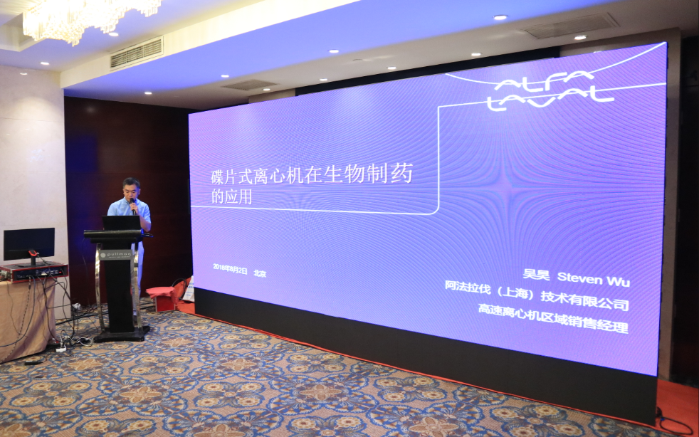 Alfa Laval公司區域銷售經理吳昊對“蝶式離心機在生物制藥的應用”進行了主題演講