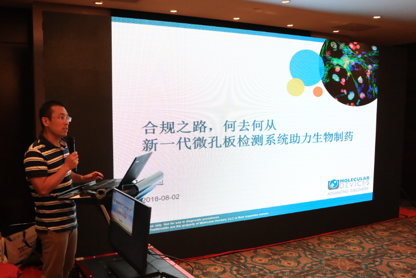 MD公司酶標儀產品線經理尹迪對“合規之路,何去何從——新一代微孔板檢測系統助力生物制藥”進行了主題演講