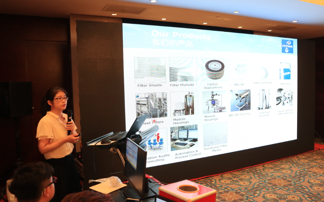 Filtrox公司營銷總監何群對“高密度培養液/發酵液的澄清過濾”進行了主題演講