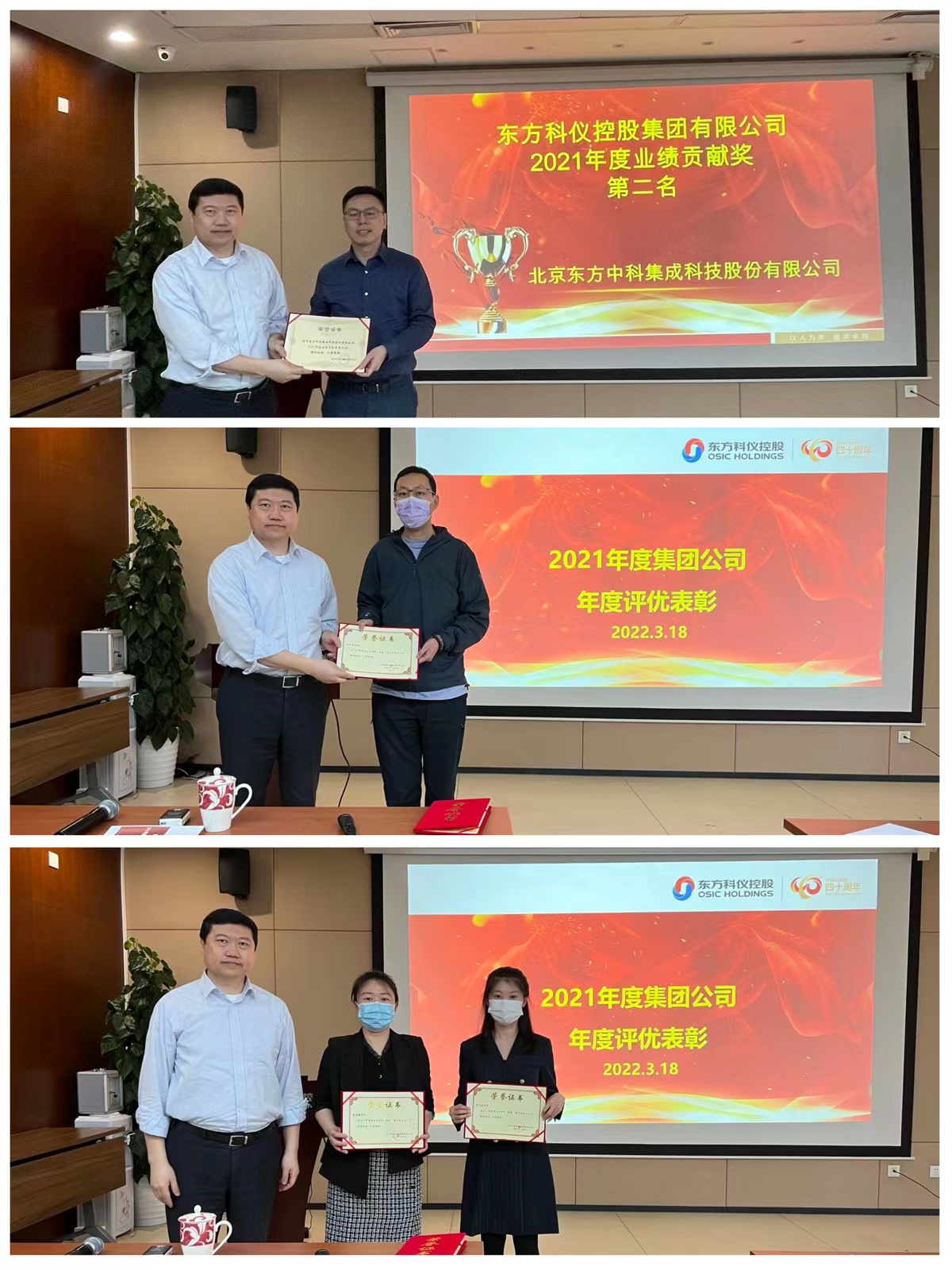 ??會議公布了2021年度成員企業業績貢獻獎、創新發展獎及2021年度集團公司最佳服務個人獎、最佳管理團隊獎評選結果。東方科學儀器上海進出口有限公司榮獲業績貢獻獎第一名,北京東方中科集成科技股份有限公司榮獲業績貢獻獎第二名。集團人力資源部徐鳴鴻、集團辦公室栗麗敏獲得最佳服務個人獎,集團信息技術部獲得最佳管理團隊獎。