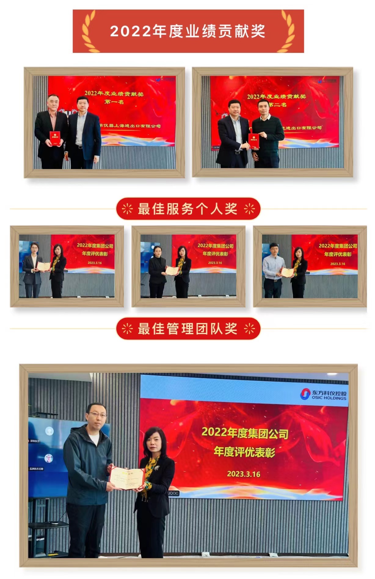 ??會議對2022年度成員企業業績貢獻獎、2022年度集團公司最佳服務個人獎、最佳管理團隊獎進行了表彰。東方科學儀器上海進出口有限公司榮獲業績貢獻獎第一名,廣州市東方科苑進出口有限公司榮獲業績貢獻獎第二名。