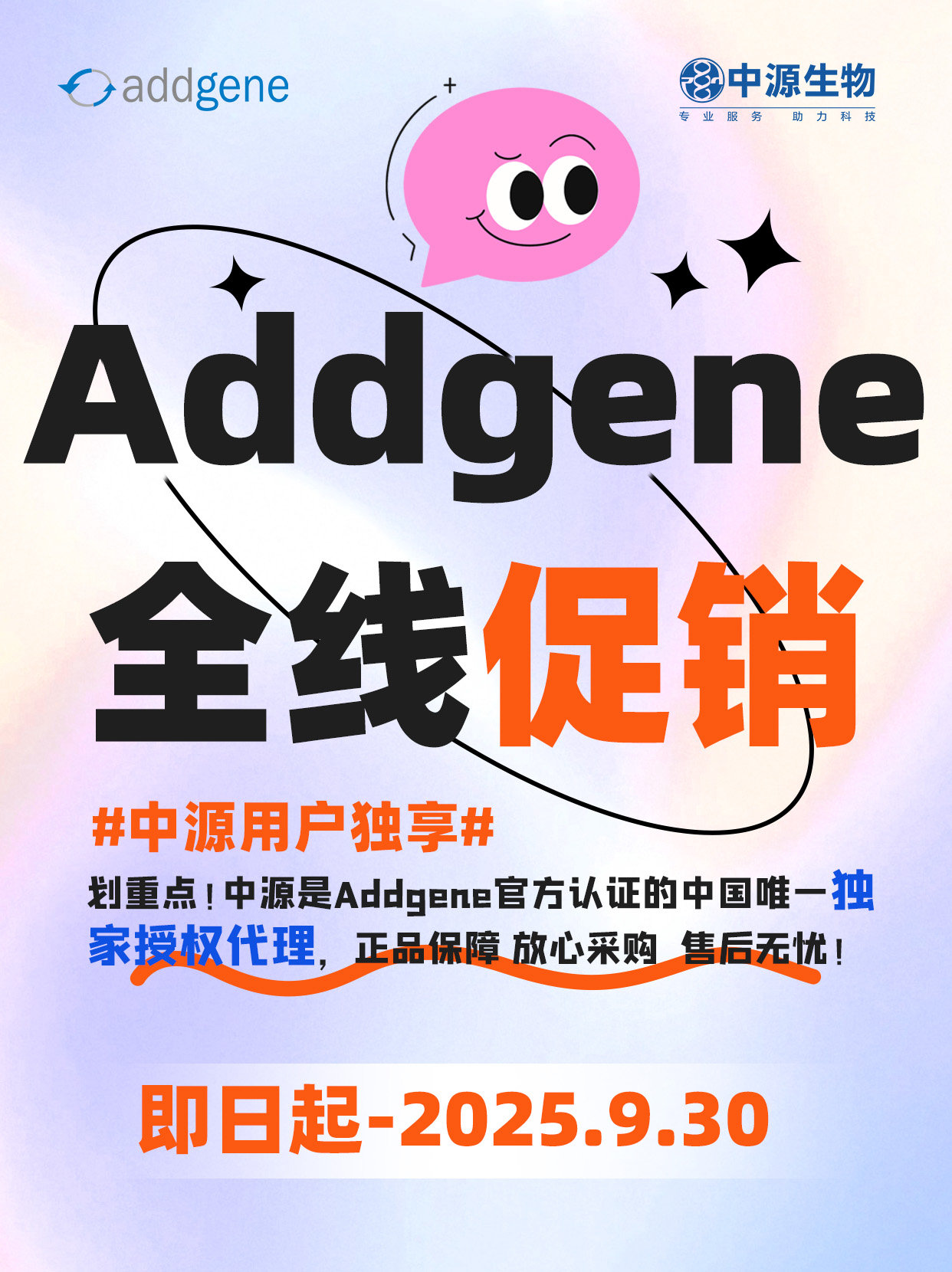 該專屬福利僅持續至2025 年 9 月 30 日,之后 ADDGENE 或對中國客戶漲價并取消折扣,成本將大幅增加!