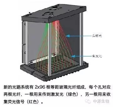 LightCycler480Ⅱ檢測單元橫截面圖。采用了精心設計的五角棱鏡光學結構,光學元件及焦距的巧妙組合確保了整板信號激發的特異性與數據收集的一致性,從而清除了邊緣效應。
